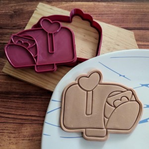 Este cortador de galletas consta de 2 partes: Contorno (parte externa) y Sello (marcador de detalles)