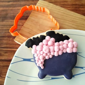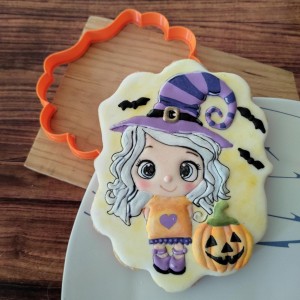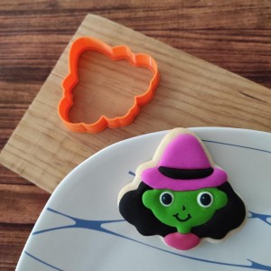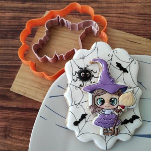 Este cortador de galletas consta de 2 partes: Contorno (parte externa) de Brujita Mini y Marco