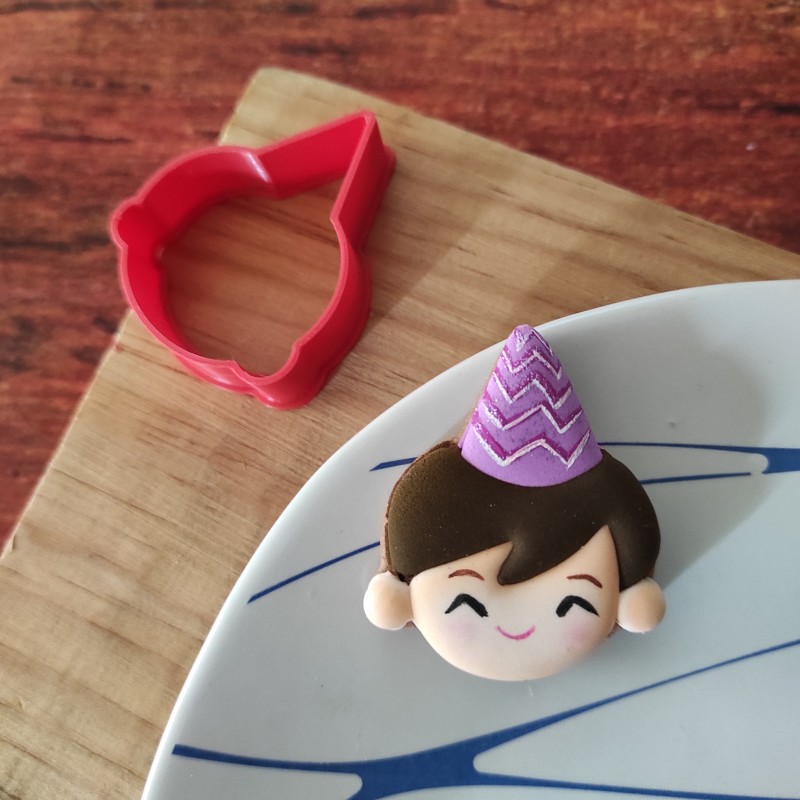 Cortador para galleta en forma de niño con gorro de fiesta