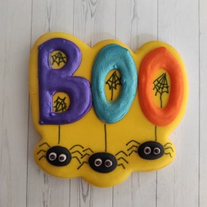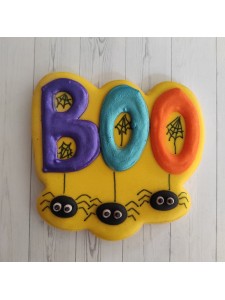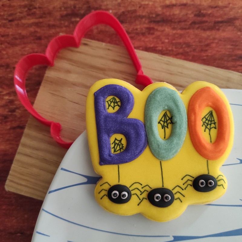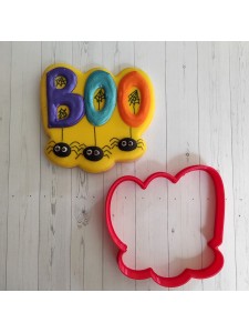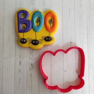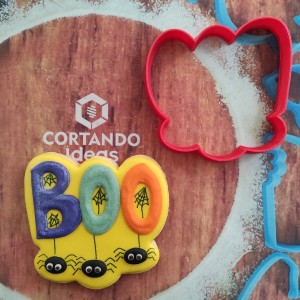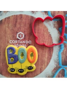 Cortador para galleta en forma de letrero Boo con arañas