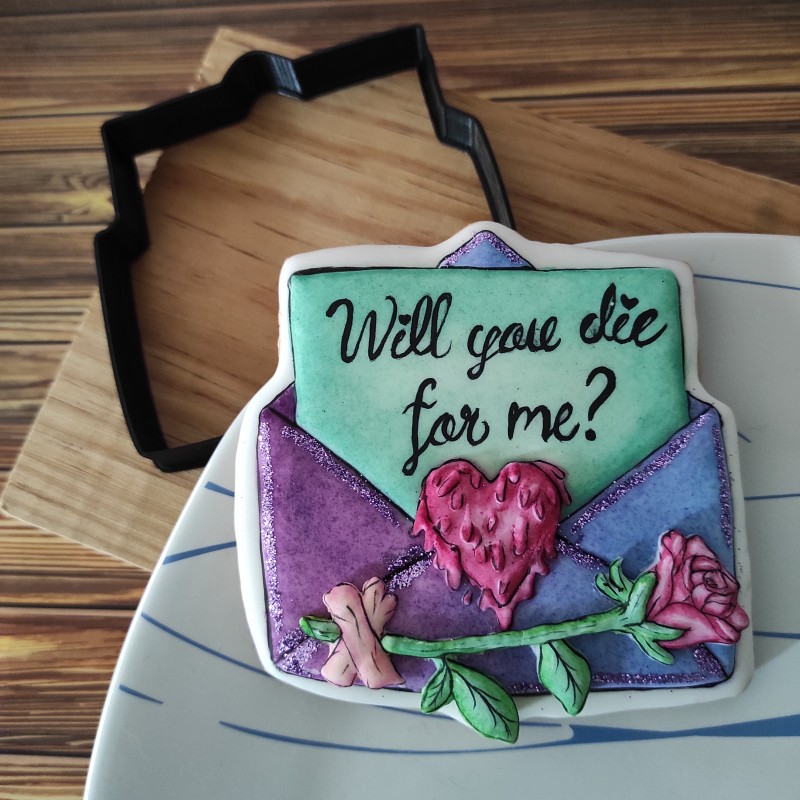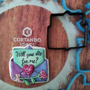 Cortador para galleta en forma de sobre con rosa
