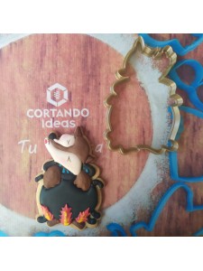 Cortador de galleta en forma de lobo en caldero