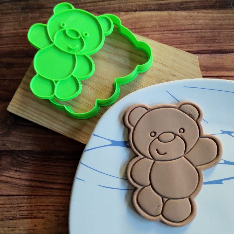 Cortador de galleta en forma de Osito Saludando con Sello