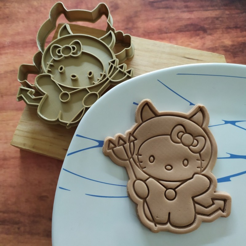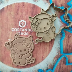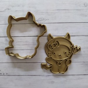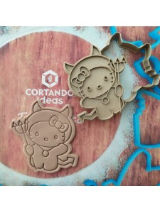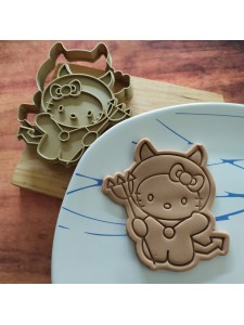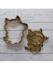 Cortador de galleta en forma de Hello Kitty diabla con sello