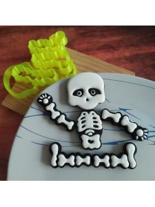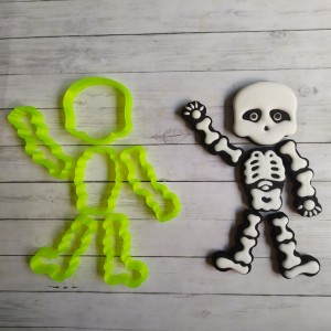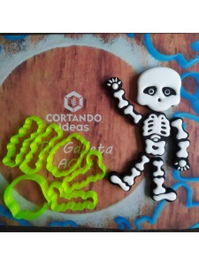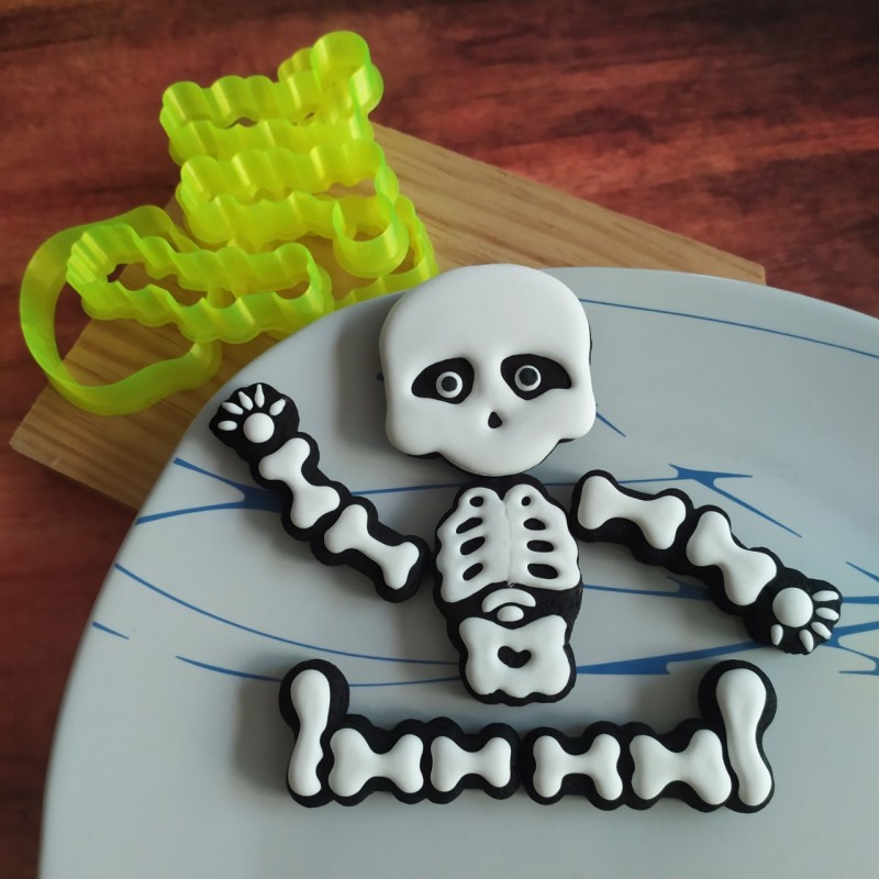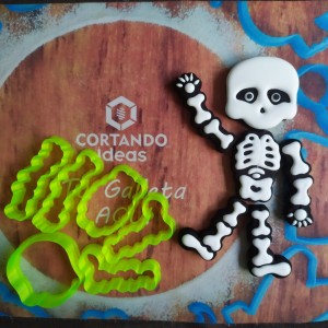 Este cortador de galletas consta de 4 parte: Contorno (parte externa) Partes de la Calaca (pierna,brazo,cabeza,torzo)