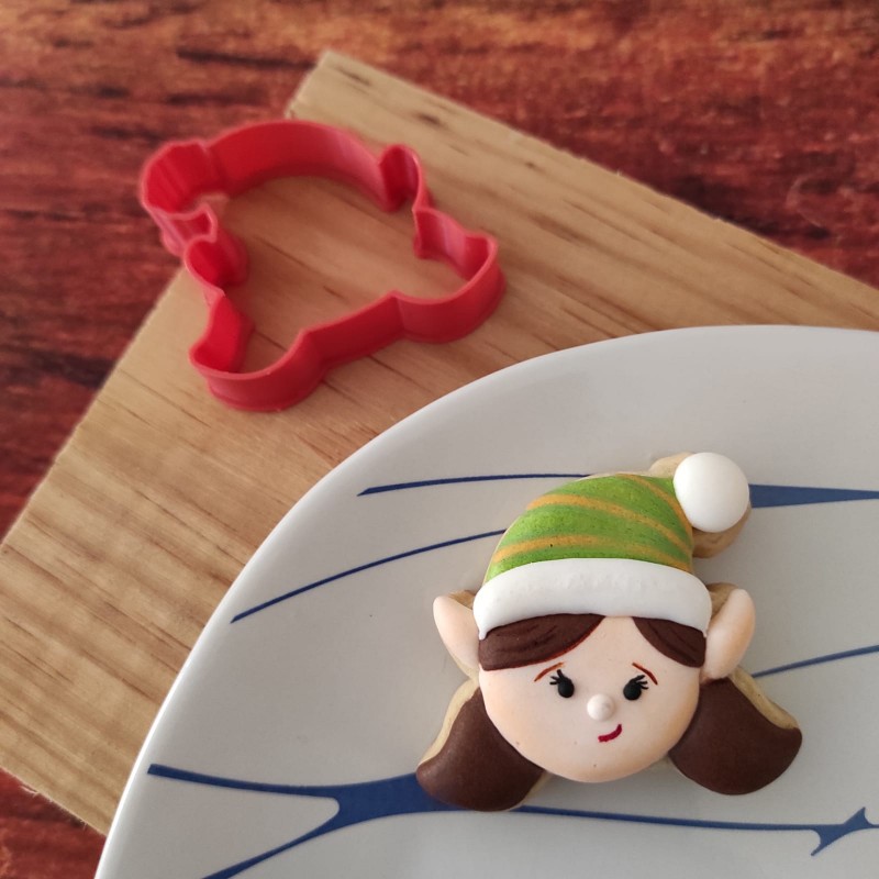 Cortador de galleta en forma de Cara de Elfa Navideña