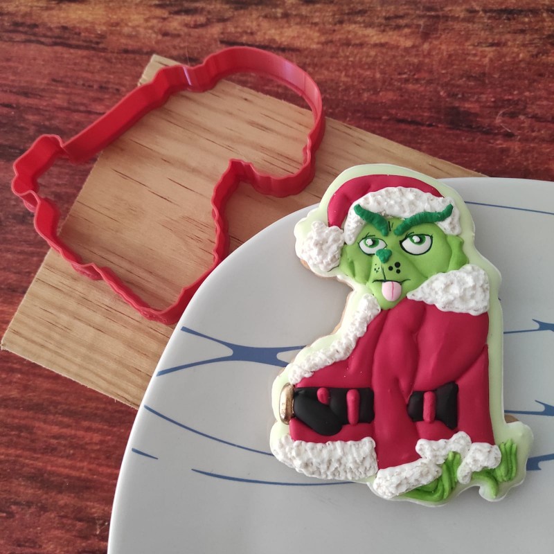 Cortador de galleta en forma de Grinch sacando la lengua