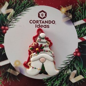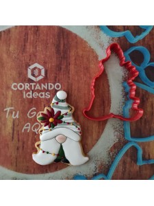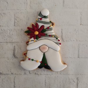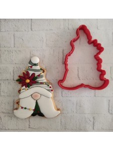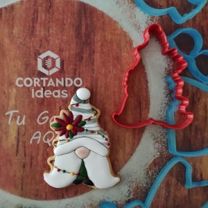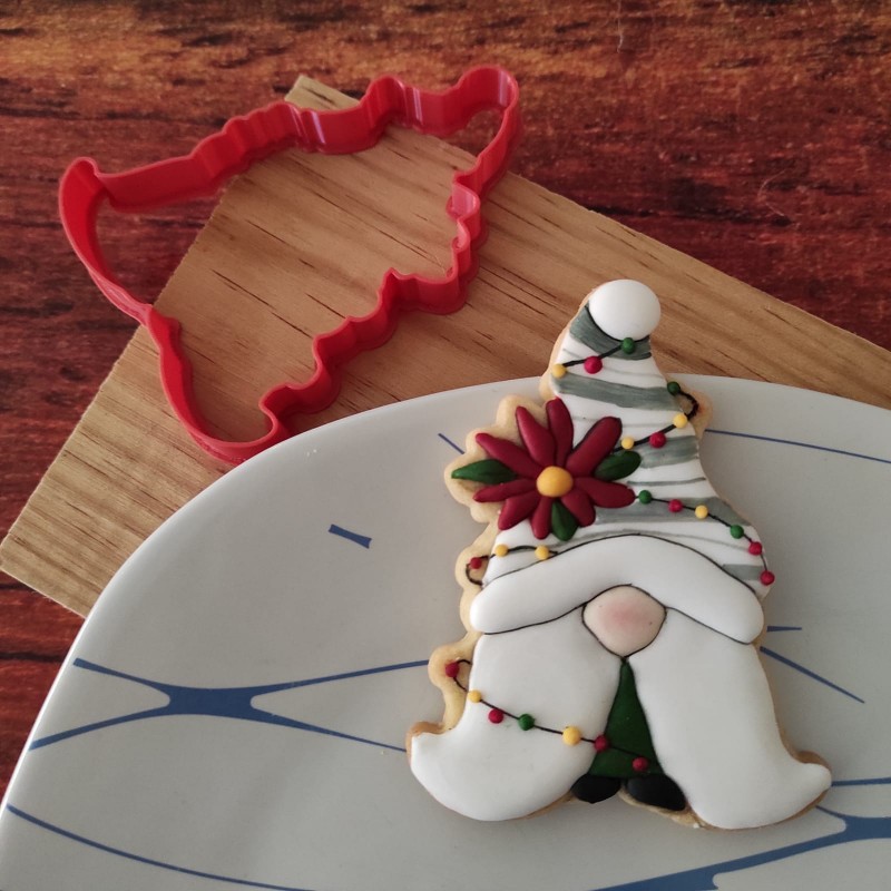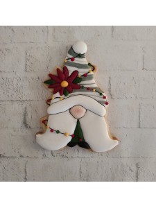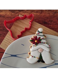 Cortador de galleta en forma de Gnomo con guirnalda de luces y nochebuena