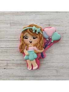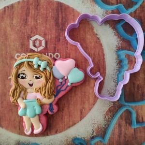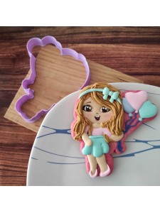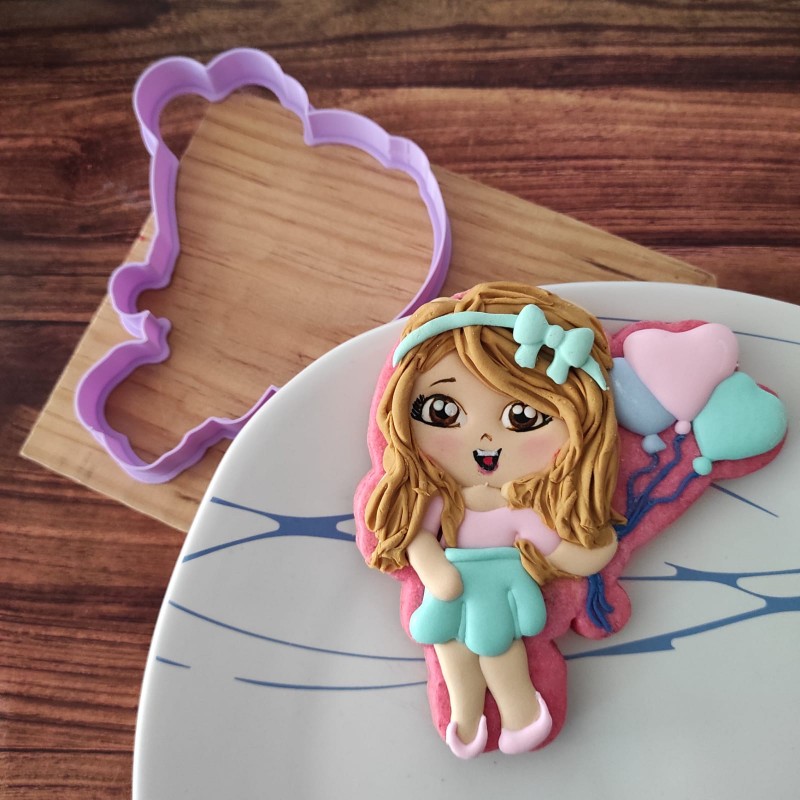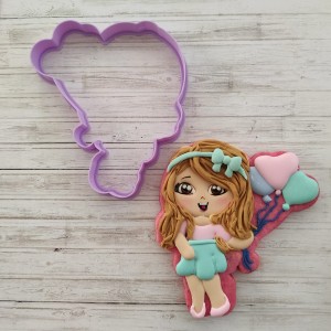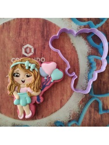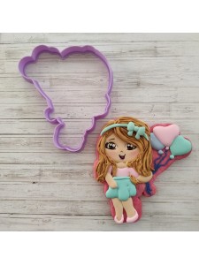 Cortador de galleta en forma de Chica con globos de corazón