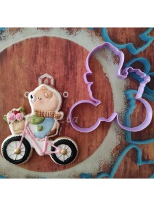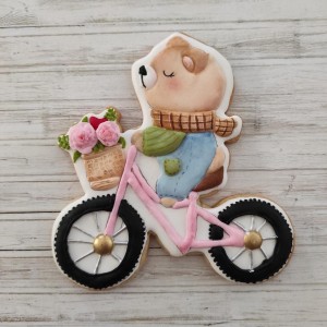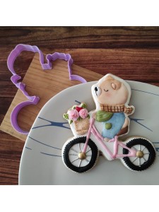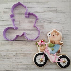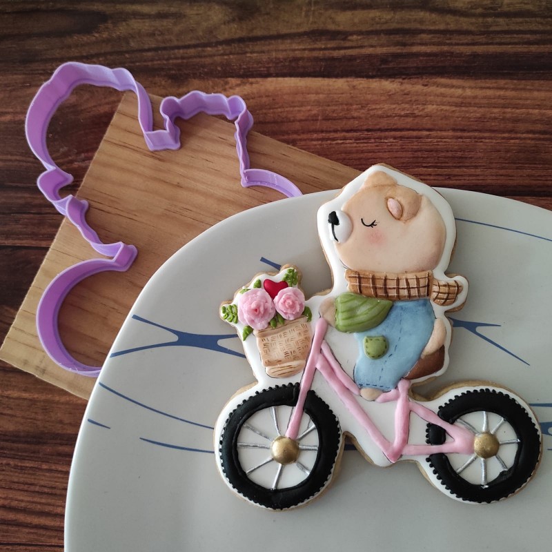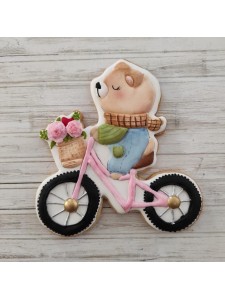 Cortador de galleta en forma de Oso en bicicleta con flores
