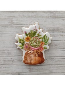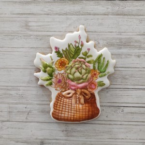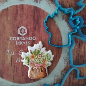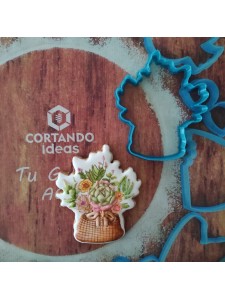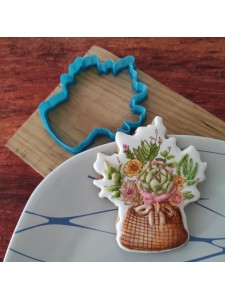 Cortador de galleta en forma de Canasta con suculentas y flores